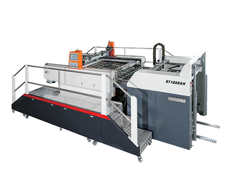 The ST1050AH is an automatic stop-cylinder Screen Press Printing machine with configurations for Cold Foil, Cast & Cure, UV / Spot UV, Thick Matt UV, Wrinkle, and Snowflake finishing.