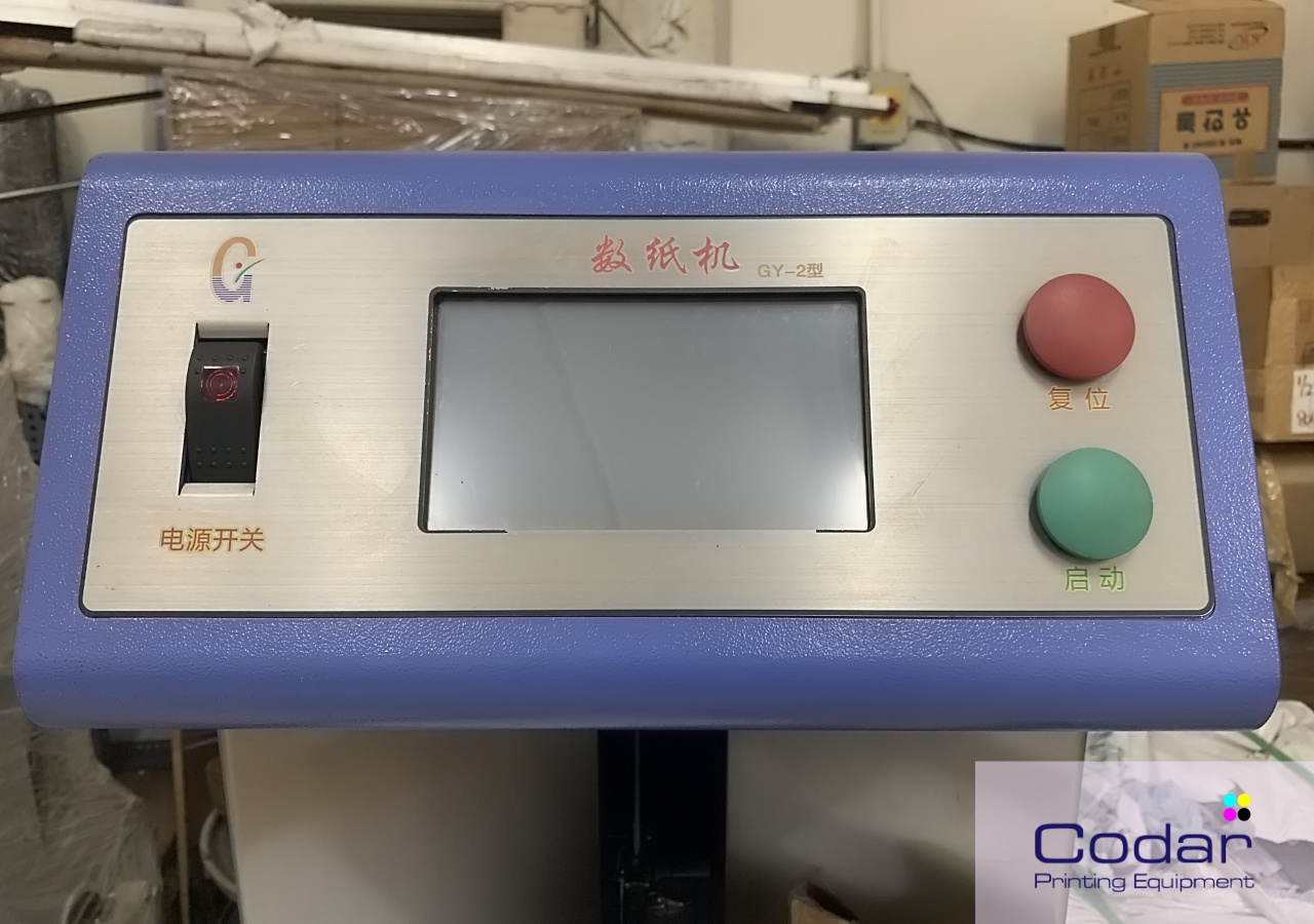 The HB-2 is a fully automatic paper counting system utilises a microcomputer controller and mechanical linkage mechanism with a working speed of 2200 sheets per minute. HB-2 is compatible with paper ranging from 25g/m² to 210g/m² and minimum/maximum sizes between length of 100mm by width of 100mm, and 800mm by 1200mm respectively. The automatic electric paper counter is reliable and robust paper counter, suitable for use in bindery with high volume paper counting tasks.
